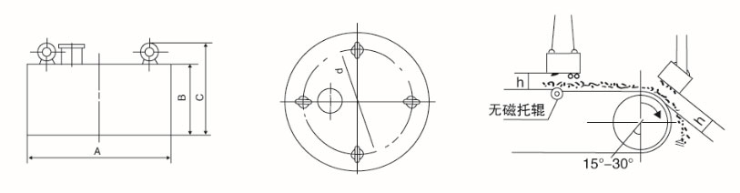型號(hào)> | 冷卻方式 | 適應(yīng)帶寬 mm | 額定高度 mm | 磁場(chǎng)強(qiáng)度 mT | 勵(lì)磁功率 kw | 適應(yīng)帶速 ≤m/s | 外形尺寸mm φD×B | 重量 | |