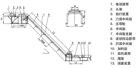 DJ型大傾角擋邊帶式輸送機(jī)